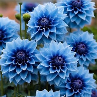 Цветки георгинов — это сложные соцветия, представляющие собой корзинки, состоящие из язычковых и трубчатых цветков. Язычковые цветки обычно крупнее и имеют разнообразную форму и окраску, а трубчатые цветки — мелкие и расположены в центре корзинки. У махровых сортов трубчатые цветки превращаются в язычковые, увеличивая махровость соцветия.